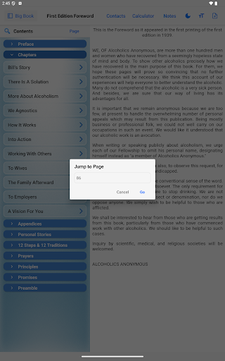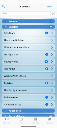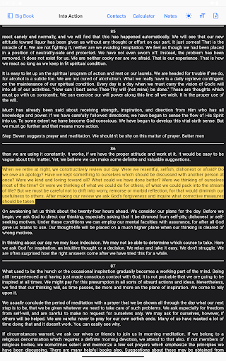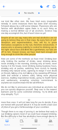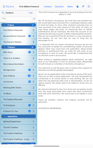 Use the search tool within the Big Book section to find keywords, passages, or stories quickly and easily.