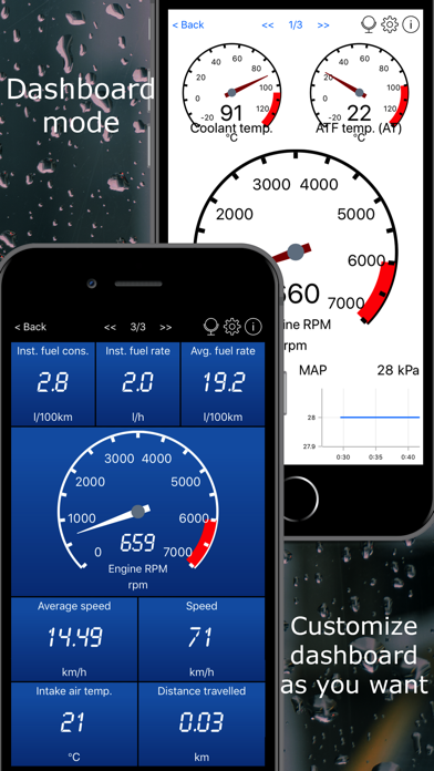 Navigate to the ‘Live Data' tab in the app to see engine RPM, speed, coolant temp, and sensors, or customize your dashboard via Settings > Dashboards.