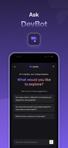 Tap on DevBot icon, type your question or code issue, and get instant summaries, explanations, or debugging tips in chat format.