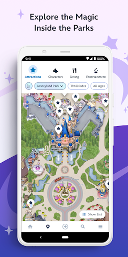 - Interactive Map & Navigation: Seamlessly explore the park and find your favorite rides, food, and shows.