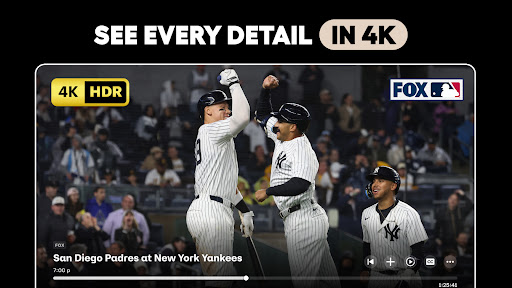FOX One offers live sports including NASCAR, IndyCar, MLB on FOX, and FIFA World Cup 2026™. You can stream in 4K and use Multiview to watch up to four streams simultaneously.