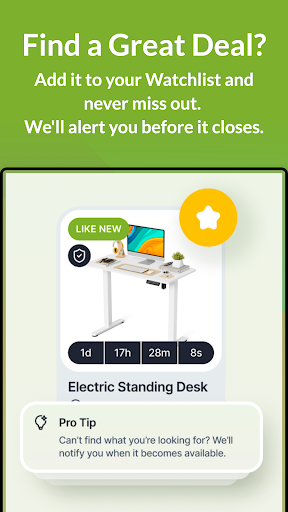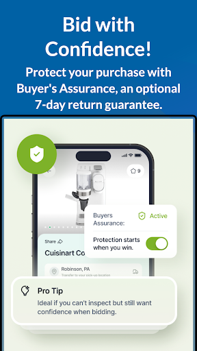 Download the app, open it, tap 'Register,' follow the prompts to set up your account, then browse and start bidding on items.