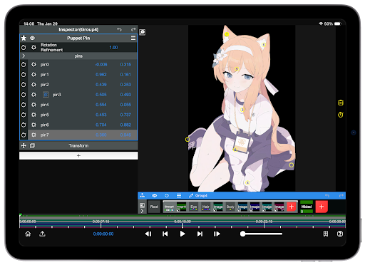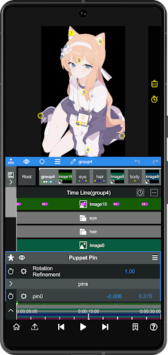 Select an element, then access the Keyframe menu to animate properties over time for smooth transitions and effects.