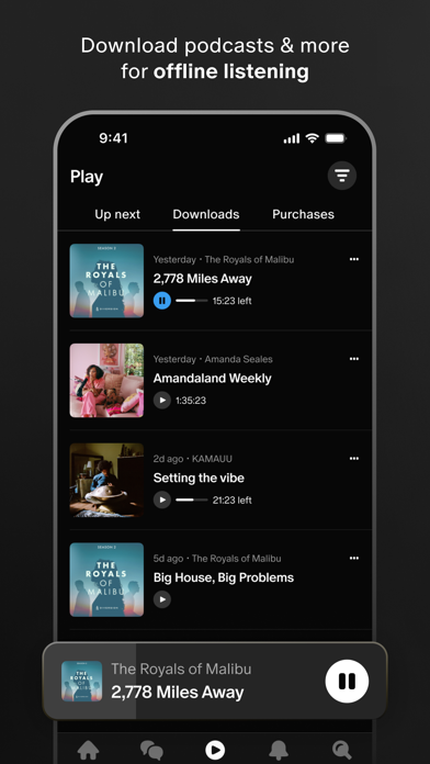 Open the content (podcast, video, etc.), tap the 'Download' icon, then enjoy offline without internet access.