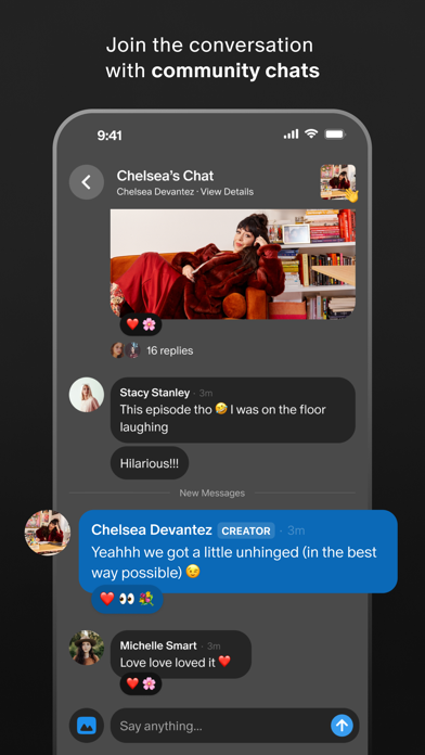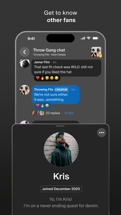 Go to the creator's page, tap 'Community' or 'Chat,' and join discussions or ask questions directly within the app.