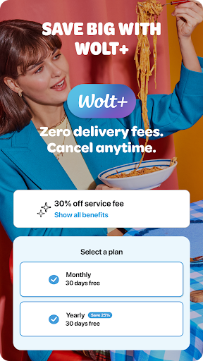 Wolt+ offers free delivery and exclusive discounts. Sign up via 'Account' > 'Subscriptions' in the app and follow the prompts to subscribe.