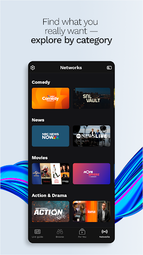 - Extensive Channel Lineup: Over 200 live TV channels spanning news, sports, entertainment, and more, mimicking traditional cable but in a streamlined app interface.